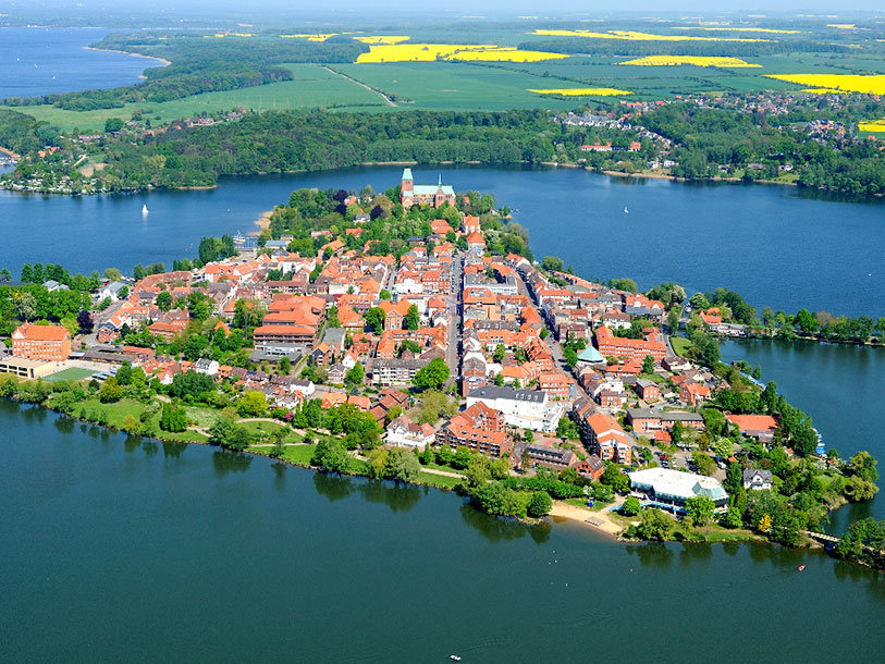 Der Seehof ligger på et næs mellem fastlandet og middelalderbyen Ratzeburg, som troner på sin egen lille ø – forbundet med næsset via en bro.