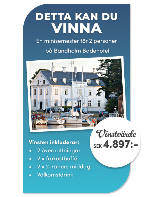 Bli medlem i Happydays Reseklubb och delta i utlottningen av en 3-dagars vistelse för två personer på Bandholm Badehotel – ett historiskt och nyrenoverat 4-stjärnigt badehotell på Lolland. Här kan du koppla av, njuta av havsutsikt från vedeldade bad och bastutunna samt unna dig lokala delikatesser i hotellets Restaurang Alba.