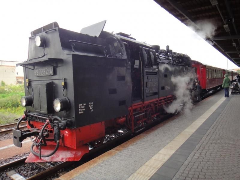 Turen var en nostalgisk upplevelse, här blev biljetten klippt som i gamla dagar, här såg vi vid ändstationen hur lokomotivet blev påfyllt med vatten, och här gick det inte snabbare än att vi kunde följa med i landskapet. Även på en regnig dag, var det en fin upplevelse. Stationen i Quedlinburg, varifrån man också kan komma vidare ut i den stora världen, har bevarat sin gamla stationsbyggnad med biljettförsäljning vid lucka, kiosk, konditori och restaurang – som ”förr i tiden”. På en semester gör det inte något, att det är som det var förr.