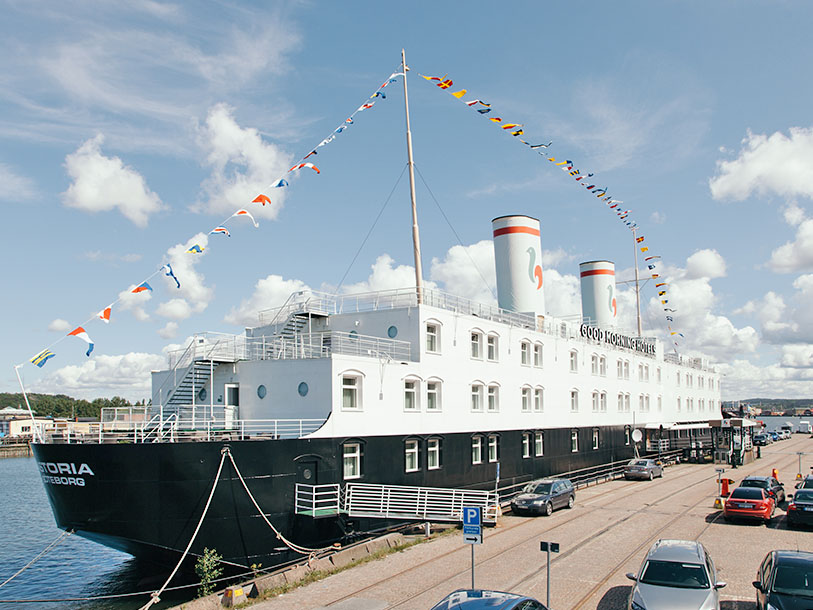 Som tidligere færge, er værelserne selvfølgelig små, men de er pænt istandsat og praktisk indrettet. Restauranten er hyggelig, og man kan spise morgenmad med udsigt ud over vandet. Der er gratis kaffe og småkager hele døgnet, og man kan benytte restauranten som opholdsrum om aftenen, hvilket var praktisk, når vi var et selskab på otte personer. Morgenbuffeten var lækker, og der var et stort udvalg, selvfølgelig også af det svenske knækbrød. Der er også en hyggelig lille solterrasse på dækket, hvor man kan nyde udsigten udover vandet og havnen. Hotellet tilbyder ikke aftensmad, men der ligger flere fine restauranter i nærheden, hvor der er udeservering når vejret tillader det, og selvfølgelig også med havudsigt.