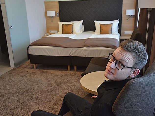 Nu skal det siges at mit tyske ikke er meget bedre end hvad man kan forvente af en 7. klasses elev (…jeg er til gengæld mega god til at blande farver – jojo, man er vel grafiker), så den første udfordring for mig var at skaffe nøglen til mit hotelværelse. Inden jeg når at forsøge mig på noget tysk-engelsk-dansk (med hård jysk accent) bliver jeg mødt af en meget imødekommende hotelejer som tog mig under sine vinger, og inden jeg får set mig om, så står jeg med en hotelnøgle og er på vej op på værelse 5. Det der med at være heldig, det er lige mig, og det var det også denne gang. Jeg blev indkvarteret på et lækkert enkeltværelse med alt hvad mine trætte rejsefødder kunne drømme om.
