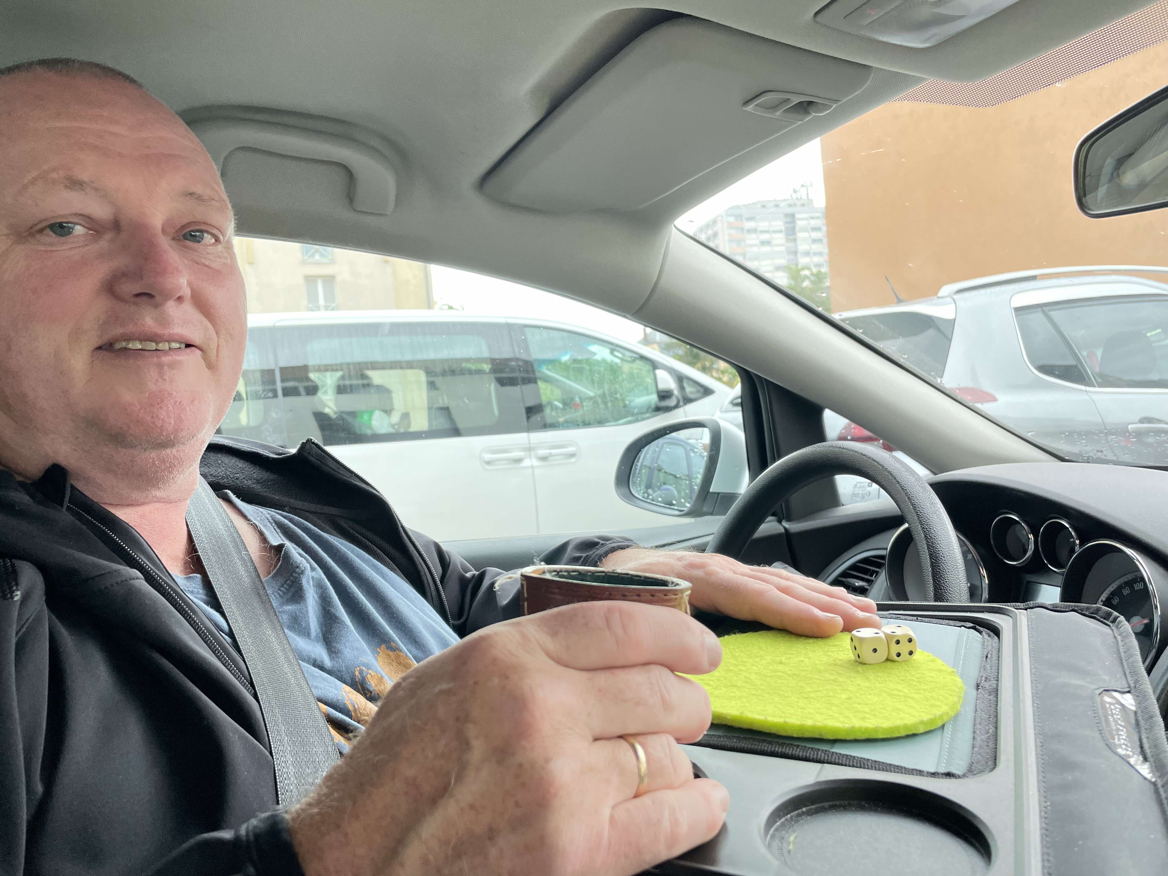 I måndags körde vi in till Colmar som man helt enkelt måste besöka när man är i området. Det slutade med att vi stod i kö och hann fantisera om många saker som kunde vara orsaken till detta, när det visade sig att det berodde på att ett stort antal lastbilschaufförer demonstrerade mot några planerade motorvägsavgifter. Välkommen till Frankrike! Nåväl, vi var på semester och hade tillräckligt med tid, så vi hittade yatzy-spelet och började spela med vår kylväska som bord. När trafiken äntligen började rulla igen kom vi överens om att hitta en stormarknad och sedan lämna stan för att inte hamna i samma situation igen. Stormarknaden var stor och fin, dem ser vi inte här hemma, och vi köpte en massa godsaker.